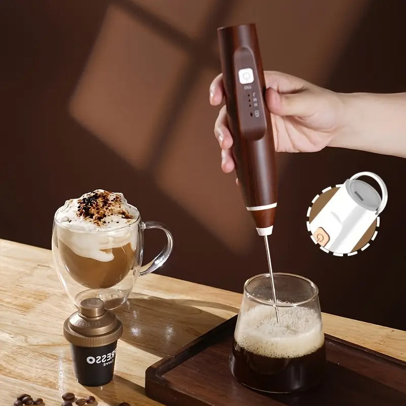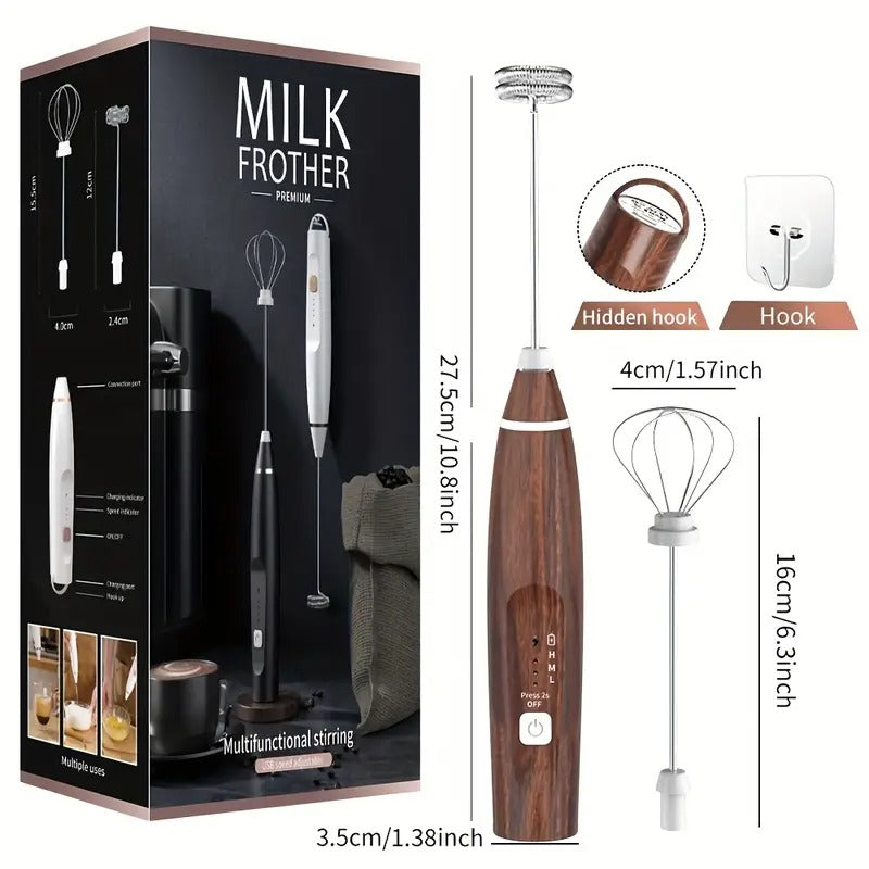 Available in four stylish color options — White, Black, Wood Grain, and Blue — this frother fits beautifully with any modern kitchen setup. Whether you’re making a morning cappuccino or whipping up a matcha latte, this is the ultimate coffee barista essential.