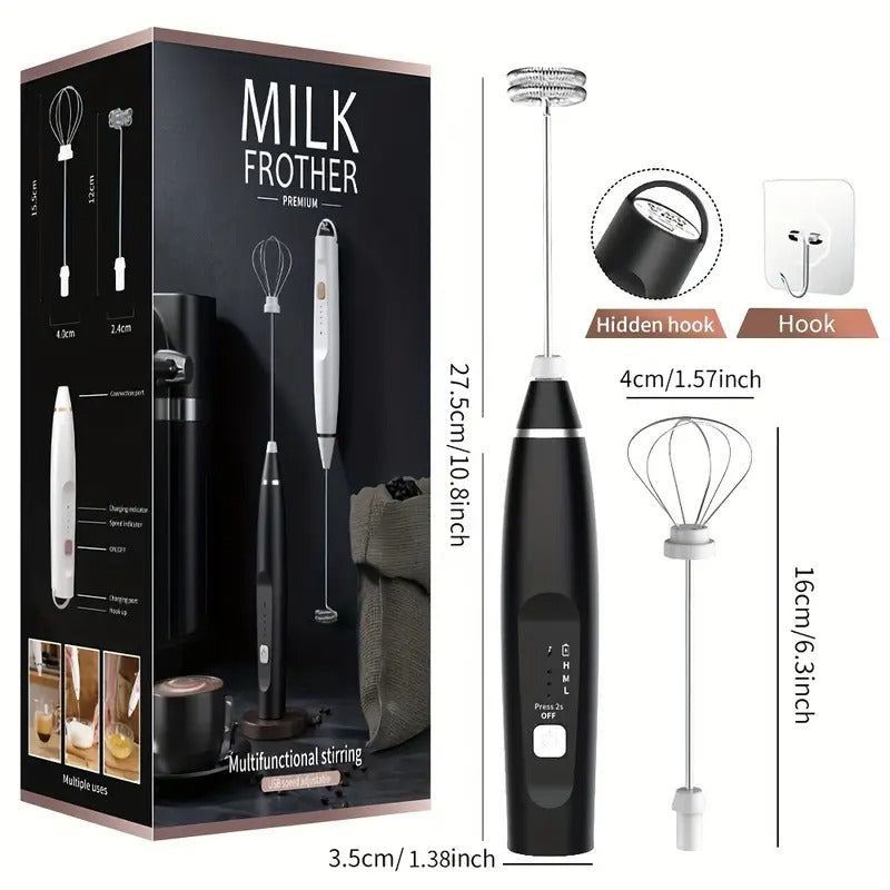 Enjoy café-quality drinks at home with this handheld milk frother, designed to give your coffee, latte, or hot chocolate that perfect creamy finish. Featuring 3 adjustable speeds and 2 stainless steel whisks, it effortlessly froths milk, mixes eggs, or blends protein shakes in seconds.