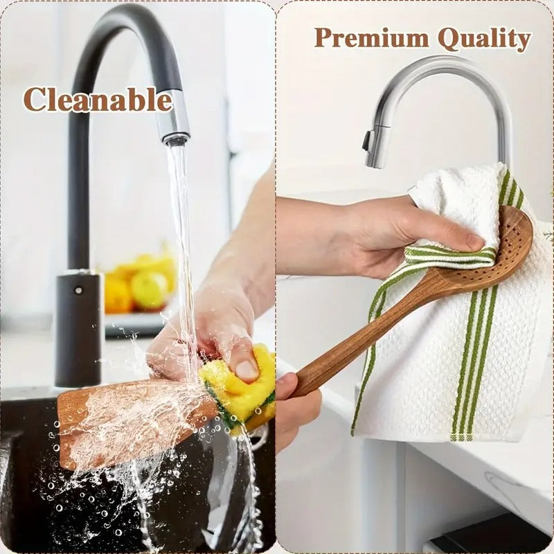 The heat-resistant design makes these spoons perfect for stirring hot soups, sautéing vegetables, or serving gourmet dishes. Their ergonomic handles ensure a comfortable grip, while the durable wood construction resists cracking, bending, and absorbing odors.