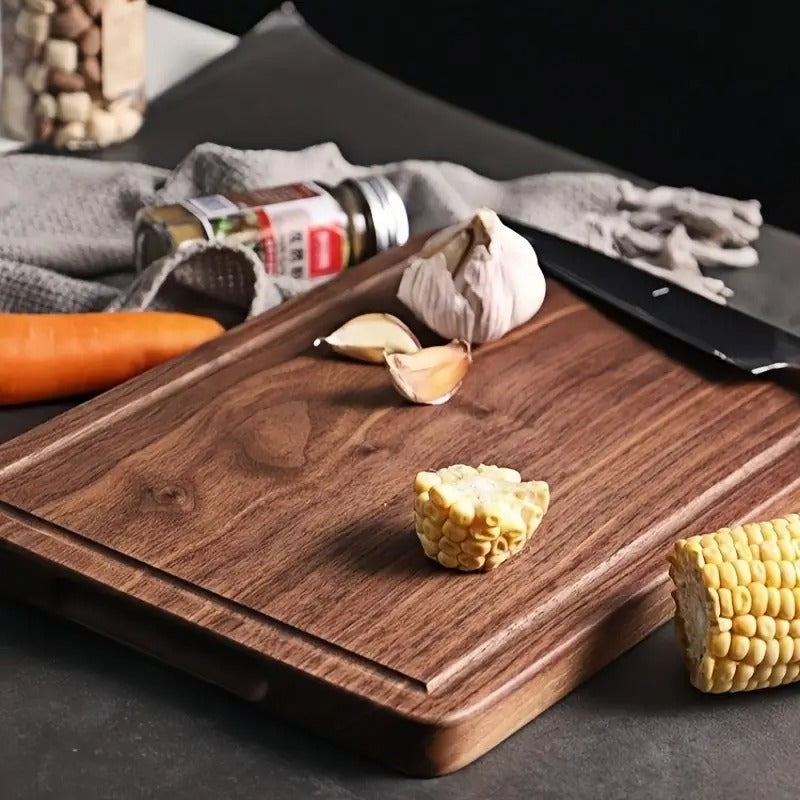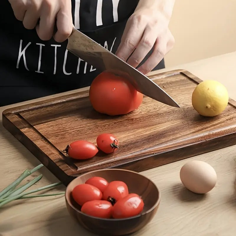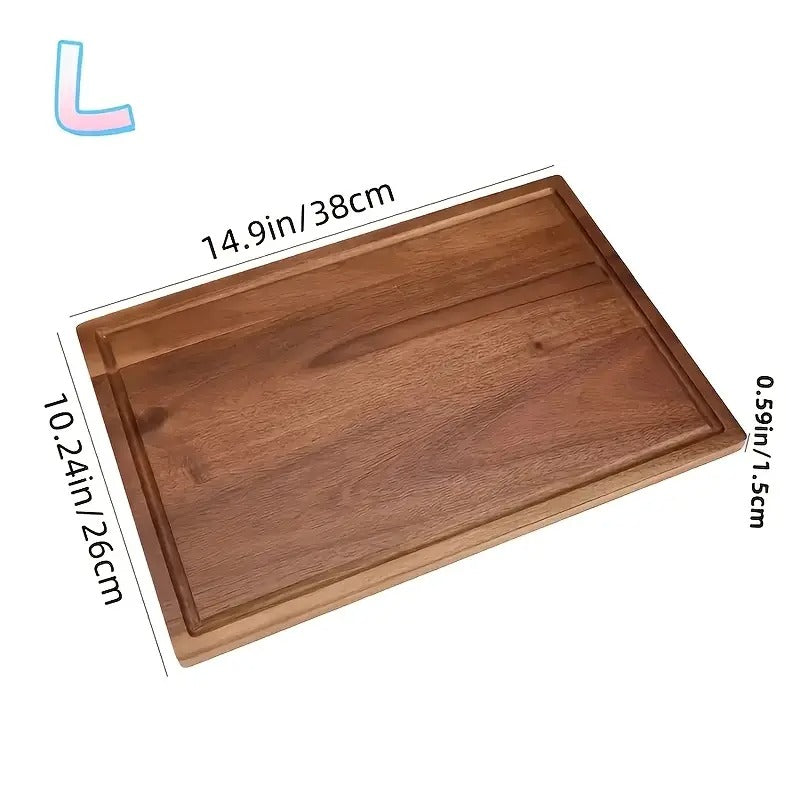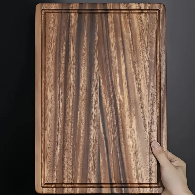 Upgrade your kitchen with this beautifully crafted acacia wood cutting board, designed for both everyday cooking and stylish serving. Made from solid, durable acacia wood, it features a built-in juice groove to catch excess liquids, keeping your countertop neat and tidy.