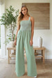 The Smocking Top Wide Leg Jumpsuit combines style and comfort effortlessly. The smocked top provides a fitted and flattering look, while the wide-leg design offers a chic and relaxed silhouette. This jumpsuit is a versatile choice for any occasion, whether it's a casual day out or a special event. Effortlessly stylish and easy to wear, this jumpsuit is a must-have in any wardrobe.