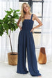 The Smocking Top Wide Leg Jumpsuit combines style and comfort effortlessly. The smocked top provides a fitted and flattering look, while the wide-leg design offers a chic and relaxed silhouette. This jumpsuit is a versatile choice for any occasion, whether it's a casual day out or a special event. Effortlessly stylish and easy to wear, this jumpsuit is a must-have in any wardrobe.