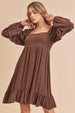Aemi + Co Ruffled Hem Square Neck Balloon Sleeve Mini Dress