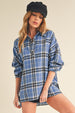 Aemi + Co Side Slit High-Low Plaid Long Sleeve Polo Shirt
