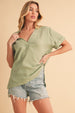 Aemi + Co Side Slit V-Neck Short Sleeve Blouse