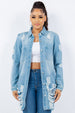 American Bazi Distressed Button Up Long Sleeve Denim Jacket