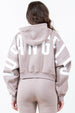 American Bazi Letter Graphic Long Sleeve Drawstring Cropped Hoodie