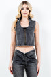 The color washed cropped denim vest features a zipper front closure, cropped length, slim-fitting silhouette, and a natural cut hem for a trendy and edgy look. The zipper front closure adds a modern touch to this classic denim piece, while the cropped length and slim fit create a flattering and stylish silhouette. The natural cut hem adds a touch of rugged charm to the vest, perfect for adding a cool and casual edge to any outfit. Pair this versatile vest with your favorite tops and bottoms for a chic and fashion-forward ensemble. Elevate your wardrobe with the color washed cropped denim vest for a must-have layering piece that will take your style to the next level!