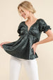 And The Why Satin Leopard V Wired Puff Sleeves Blouse