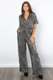 Be Stage Surplice Short Sleeve Pleated Foil Jumpsuit