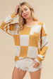 Stay stylish and cozy in this checker printed Hacci top with a front pocket. The checker print adds a trendy and modern touch to the top. The Hacci fabric is soft and comfortable, perfect for all-day wear. The front pocket detail adds a casual and functional element to the design. Pair with jeans or leggings for a laid-back and fashionable outfit. Elevate your casual look with this chic and versatile top.