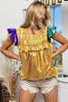 BiBi Foiled Knit Color Block Short Sleeve Ruffled Top