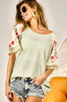 BiBi Hacci Knit Floral Crochet Trim Half Sleeve Top