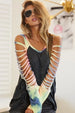 BiBi Jersey Knit Top with Tie Dye Laser Cut Sleeves