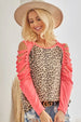 BiBi Leopard Thermal Top with Tie Dye Laser Cut Sleeves