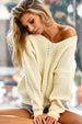 The openwork V-neck drop shoulder sweater is a stylish and modern sweater with a V-neckline and drop shoulder design. It features openwork detailing, adding a unique and fashionable touch to the classic sweater style. Perfect for layering and adding a chic element to your outfit.