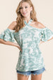 BiBi Tie-Dye Open Shoulder Ruffled Short Sleeve Top