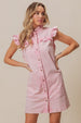 BiBi Washed Button Down Ruffled Cap Sleeve Denim Dress