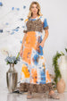 Celeste Full Size Leopard Tie-Dye Button Detail Short Sleeve Maxi Dress Plus Size