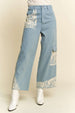 These Lace Applique Wide Leg Jeans are the perfect statement piece for any fashion-forward individual. The delicate lace detailing adds a touch of femininity to these trendy wide leg jeans. They are versatile and can be dressed up or down for any occasion. The wide leg silhouette offers a comfortable and flattering fit. These jeans are sure to turn heads and make you stand out from the crowd. Elevate your denim game with these unique and stylish Lace Applique Wide Leg Jeans.