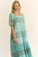 Davi & Dani Multi Floral Square Neck Puff Sleeve Maxi Dress