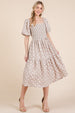 GeeGee Floral Embroidered Smocked Puff Sleeve Tiered Midi Dress