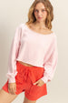 HYFVE Frayed Detail Boat Neck Long Sleeve Crop Top