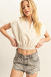 HYFVE Striped Elastic Hem Johnny Collar Cap Sleeve Blouse