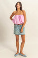 The trendy Strapless Bubble Top is a stylish and chic piece that features a strapless design and a bubble hem for a modern look. This top adds a touch of elegance and sophistication to any outfit, making it a versatile choice for various occasions.