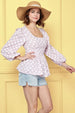 Make a statement with this polka dot print balloon sleeve babydoll peplum top. The polka dot print adds a playful and retro-inspired touch to the top. The balloon sleeves create a dramatic and eye-catching silhouette. The babydoll peplum design is flattering and adds a feminine flair. Pair with jeans or a skirt for a stylish and chic ensemble. Stand out in style with this trendy and unique top.