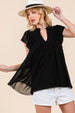 The Solid Shirred Flutter Sleeve Chiffon Blouse showcases elegant chiffon fabric with shirred details and flutter sleeves for a feminine touch. This blouse is perfect for adding a sophisticated and stylish flair to your outfit. The versatile design and flattering silhouette make it a chic choice for both casual and dressy occasions.