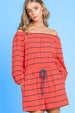 Lime 'N' Chili Striped Off-The-Shoulder Quarter Sleeve Romper