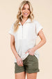 Lime 'N' Chili Textured Half Zip Cap Sleeve Contrast Top