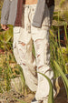 These crochet patch distressed washed jeans feature a unique combination of crochet detailing and distressed elements, adding a stylish and eclectic touch to your wardrobe. The crochet patches provide a delicate and feminine contrast to the rugged distressed areas, creating a trendy and bohemian look. These jeans are versatile and can be dressed up with a blouse and heels or dressed down with a casual t-shirt and sneakers, making them a versatile and on-trend addition to your closet. Perfect for adding a touch of individuality and personality to your everyday outfits with their blend of crochet charm and distressed appeal.