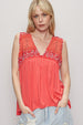 POL Lace Detail Frill Floral V-Neck Sleeveless Top