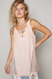 The Lace-Up Crochet Lace Tank is a chic and feminine top with intricate crochet lace detailing. The lace-up design adds a trendy and stylish element to this classic tank silhouette. Perfect for pairing with jeans, shorts, or skirts for a versatile and stylish outfit. Ideal for adding a touch of bohemian flair to your summer wardrobe.