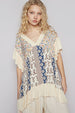 POL Ruffled Hem Printed V-Neck Short Sleeve Blouse