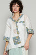 POL Vintage Washed Lace Patchwork Printed Half Button Top