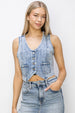 This Button Down Crop Denim Vest is a stylish and versatile layering piece for your wardrobe. Featuring a cropped silhouette and button-down front, it offers a trendy and edgy look. Perfect for adding a touch of casual-cool vibes to your outfit, this denim vest can be styled in multiple ways for a fashionable ensemble.