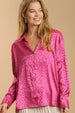 Umgee Full Size Animal Jacquard Print Button Up Long Sleeve Shirt Plus Size