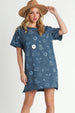 Umgee Full Size French Terry Short Sleeve Round Neck Dress Plus Size