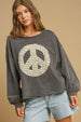 Umgee Full Size Peace Lace Applique Mineral Wash Sweatshirt Plus Size
