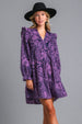 Umgee Full Size Ruffled Printed Piping Detail Long Sleeve Dress Plus Size