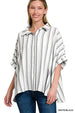 Zenana Woven Yarn-Dye Stripe Oversized Button Down Shirt